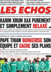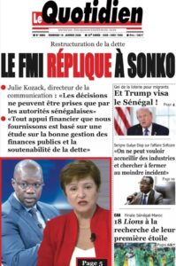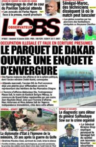 AccueilActualitésDécouvrez les Unes des journaux sénégalais du vendredi 16 janvier 2026 ActualitésdiplomatiedrameeconomieEducationenergiejusticemediaPolitiquePR DIOMAYE FAYESociétésonkoSports Découvrez les Unes des journaux sénégalais du vendredi 16 janvier 2026 Par Rédaction 16 janvier 2026 Partager FacebookTwitterPinterestWhatsApp TagsUne des journaux Partager FacebookTwitterPinterestWhatsApp Articles en relation Actualités Scandale foncier présumé : Cheikh Kanté sort du silence et affûte sa riposte médiatique 16 janvier 2026 Actualités « Tout appui financier que… » : le FMI fixe ses lignes rouges face à Ousmane Sonko 16 janvier 2026 Politique LE DÉPUTÉ QUI A OUBLIÉ LE PEUPLE… (Par Pr Demba BOCOUM) 16 janvier 2026 LAISSER UN COMMENTAIRE Annuler la réponse Commenter : S'il vous plaît entrez votre commentaire! Nom :* S'il vous plaît entrez votre nom ici Email :* Vous avez entré une adresse email incorrecte! Veuillez entrer votre adresse email ici Site : Enregistrer mon nom, email et site web dans ce navigateur pour la prochaine fois que je commenterai. Current ye@r * Leave this field empty - Advertisment - Most Popular Scandale foncier présumé : Cheikh Kanté sort du silence et affûte sa riposte médiatique 16 janvier 2026 « Tout appui financier que… » : le FMI fixe ses lignes rouges face à Ousmane Sonko 16 janvier 2026 LE DÉPUTÉ QUI A OUBLIÉ LE PEUPLE… (Par Pr Demba BOCOUM) 16 janvier 2026 AFFAIRE SOFTCARE : L’ASSEMBLÉE NATIONALE SORT LES GRIFFES ! LA MISSION D’INFORMATION LANCE LE « GRAND DÉBALLAGE » 16 janvier 2026 Voir plus