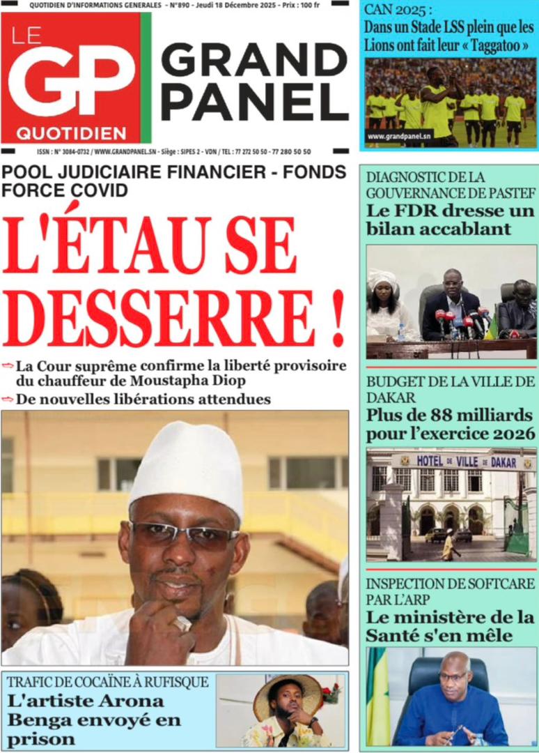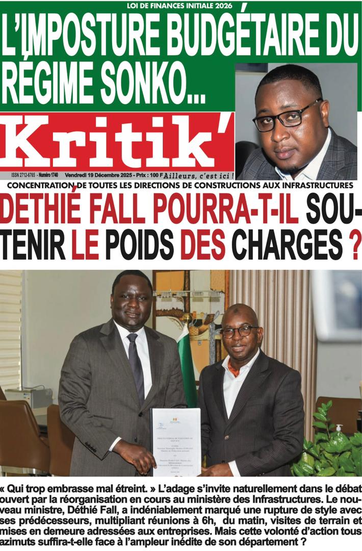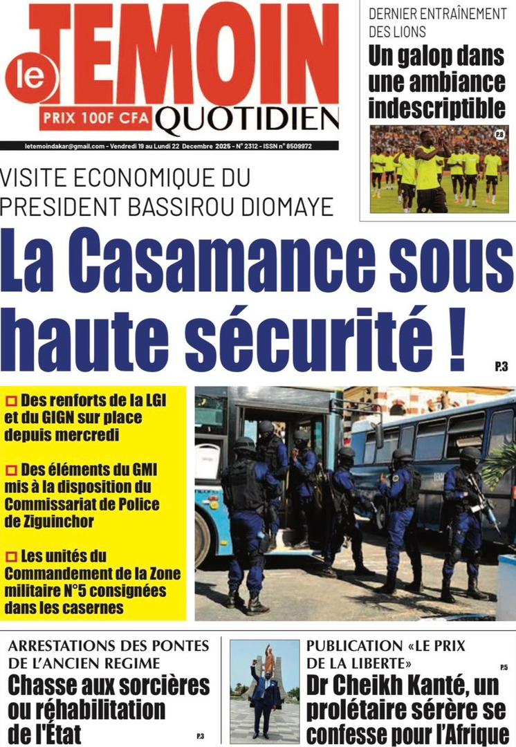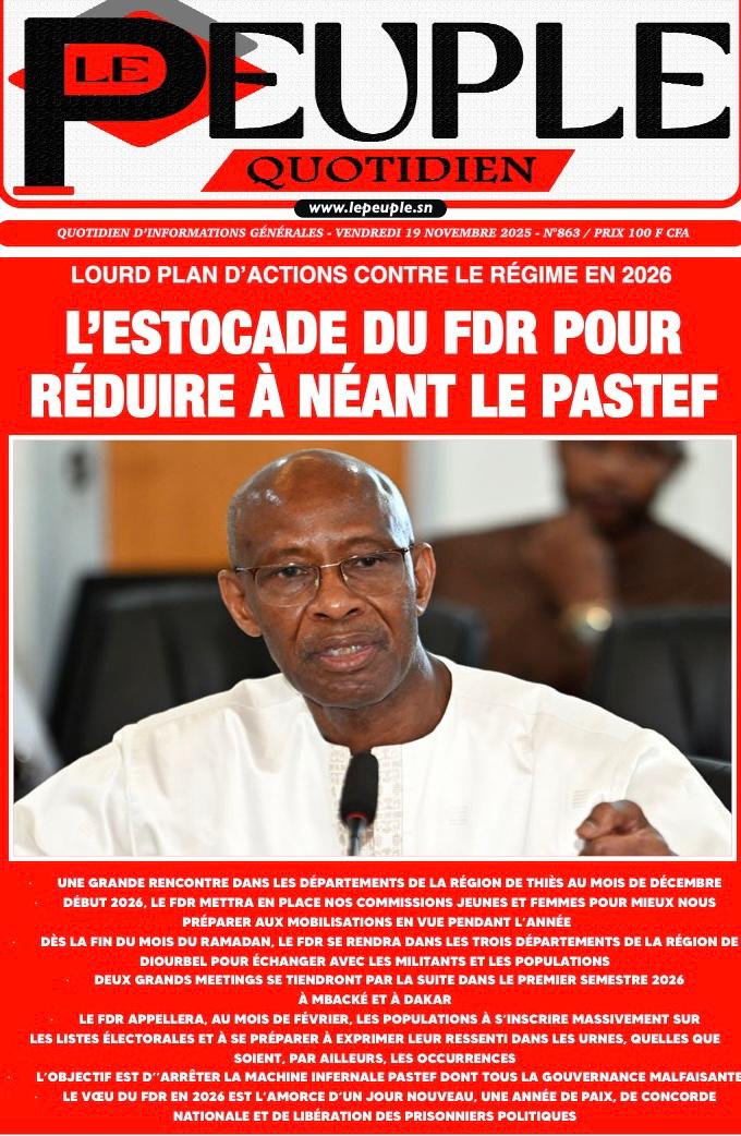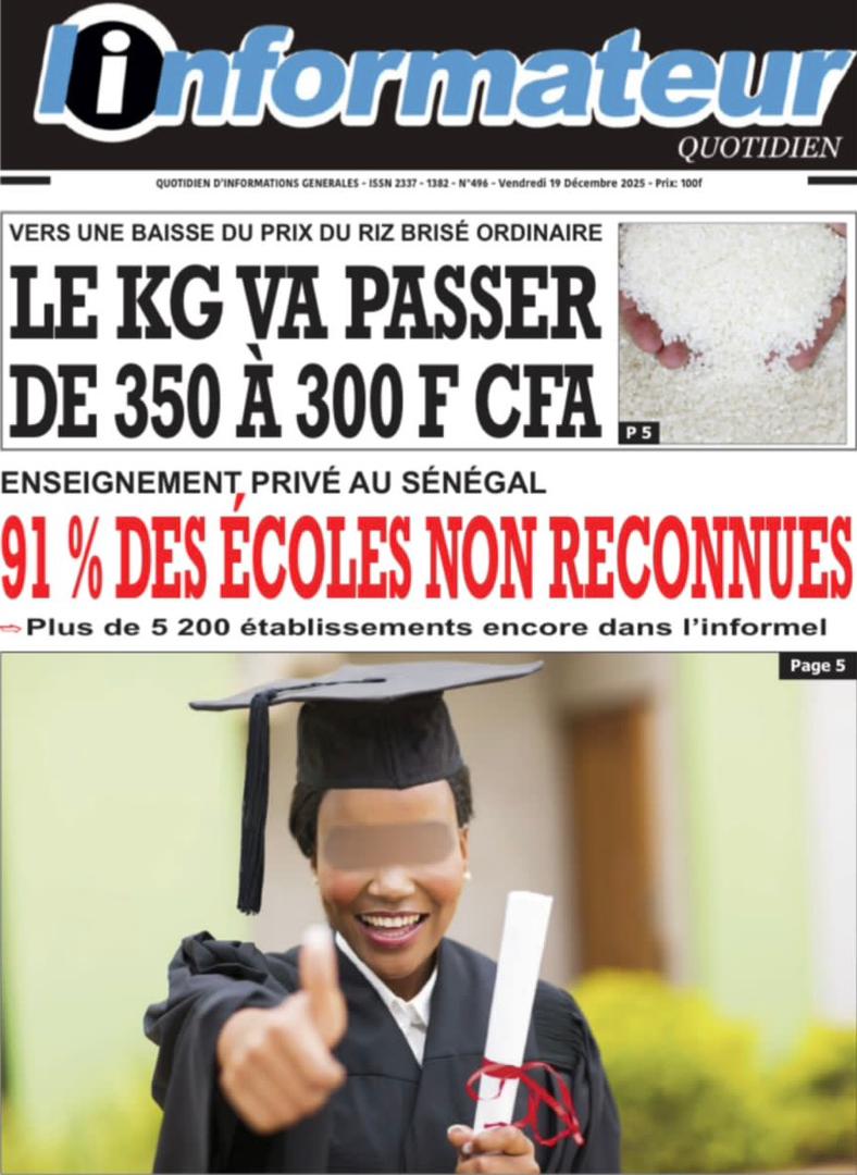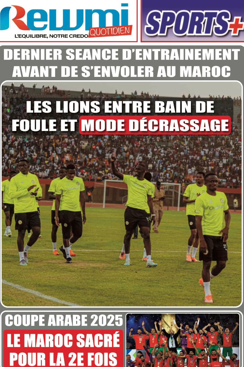 AccueilActualitésDécouvrez les Unes des journaux sénégalais du vendredi 19 décembre 2025 Actualitésmedia Découvrez les Unes des journaux sénégalais du vendredi 19 décembre 2025 Par Rédaction 19 décembre 2025 Partager FacebookTwitterPinterestWhatsApp Découvrez les Unes des journaux sénégalais du vendredi 19 décembre 2025 Partager FacebookTwitterPinterestWhatsApp Articles en relation Actualités Décret : C’est officiel, Bassirou Diomaye Faye se sépare aussi d’El Hadji Malick Mboup 19 décembre 2025 Actualités Surpopulation et conditions de détention : L’administration pénitentiaire dévoile la création de 1390 places et de nouvelles mesures 19 décembre 2025 Actualités CAN Maroc 2025 : Jakobs encore absent à la séance d’entrainement de ce jeudi 19 décembre 2025 LAISSER UN COMMENTAIRE Annuler la réponse Commenter : S'il vous plaît entrez votre commentaire! Nom :* S'il vous plaît entrez votre nom ici Email :* Vous avez entré une adresse email incorrecte! Veuillez entrer votre adresse email ici Site : Enregistrer mon nom, email et site web dans ce navigateur pour la prochaine fois que je commenterai. Current ye@r * Leave this field empty - Advertisment - Most Popular Décret : C’est officiel, Bassirou Diomaye Faye se sépare aussi d’El Hadji Malick Mboup 19 décembre 2025 Surpopulation et conditions de détention : L’administration pénitentiaire dévoile la création de 1390 places et de nouvelles mesures 19 décembre 2025 CAN Maroc 2025 : Jakobs encore absent à la séance d’entrainement de ce jeudi 19 décembre 2025 Modou Diagne Fada dresse un bilan critique des 18 mois du régime Pastef 18 décembre 2025 Voir plus