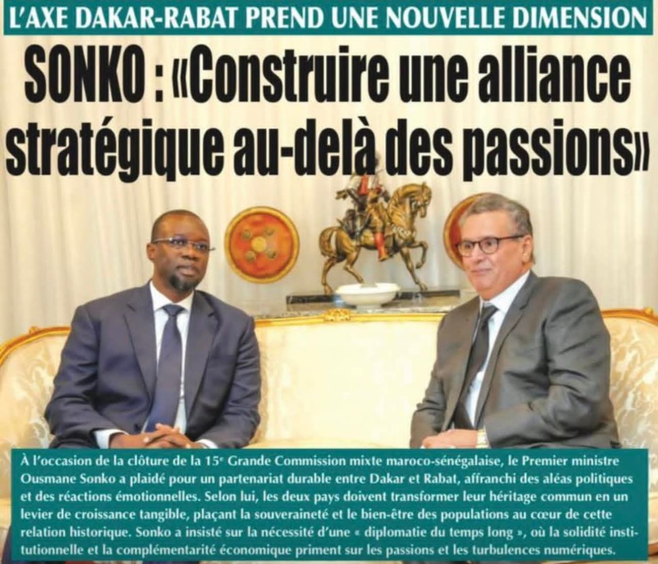 Pour Ousmane Sonko, les liens séculaires qui unissent les deux nations ne sont pas des pièces de musée, mais des actifs stratégiques. Le défi posé par cette 15ème Commission mixte est de transformer cet héritage en bien-être tangible pour les populations :