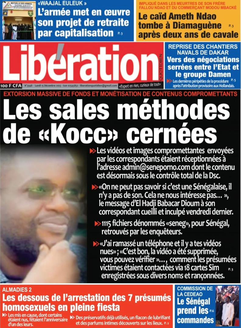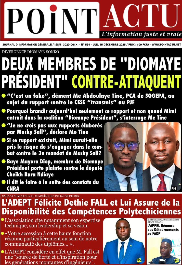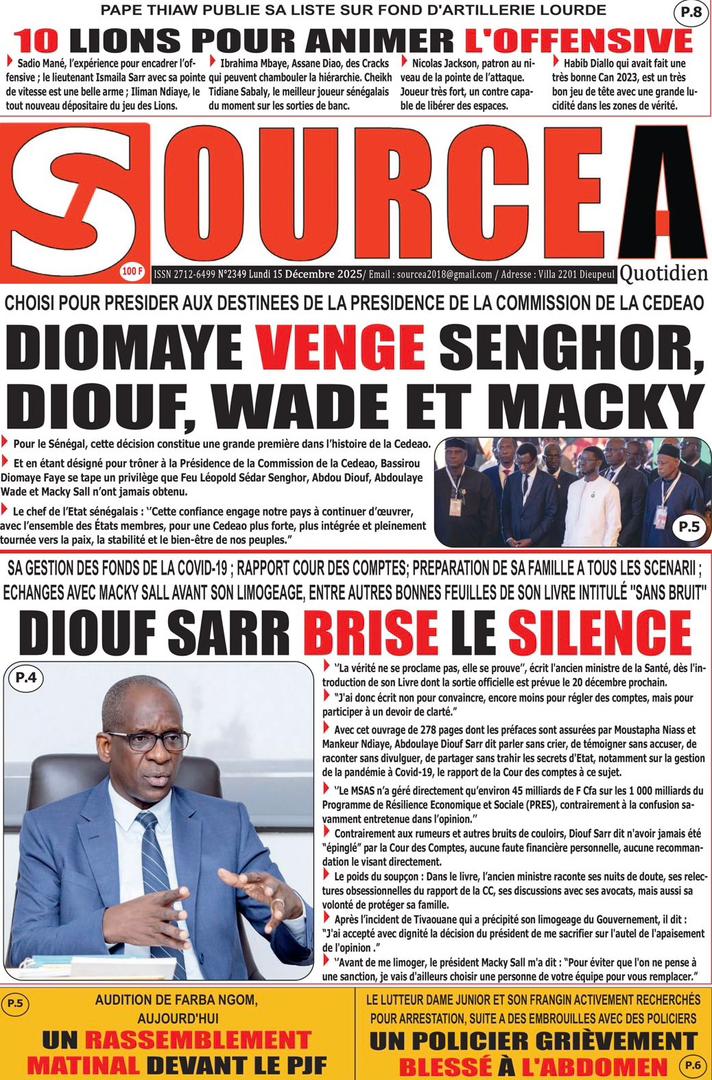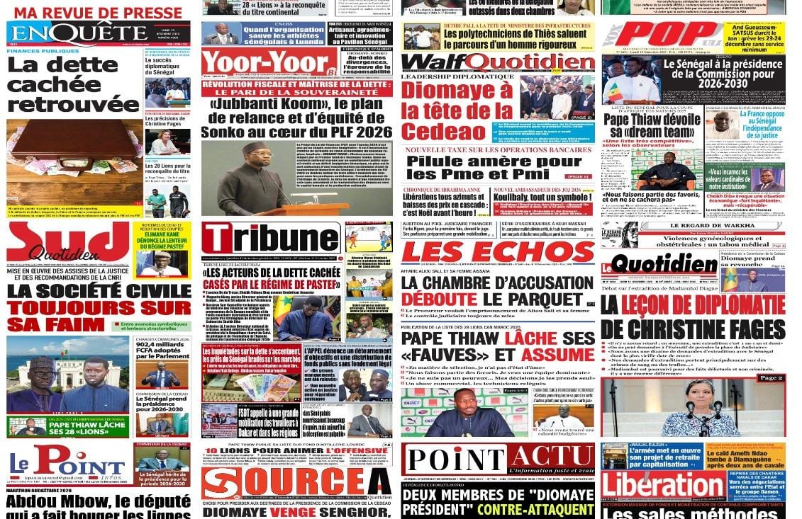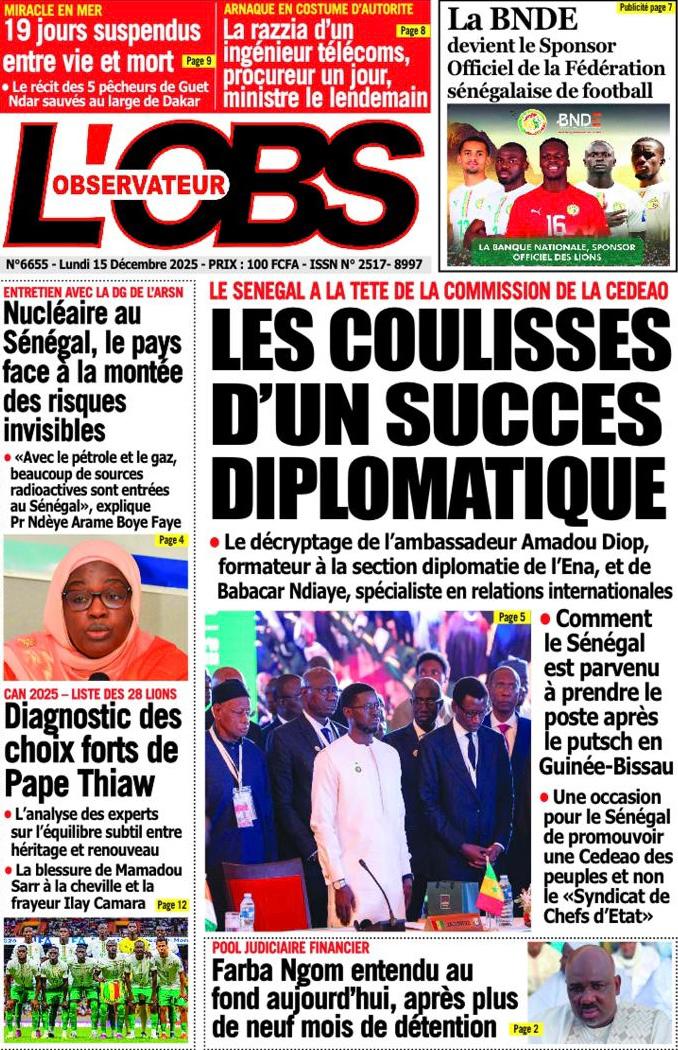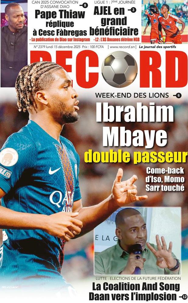 AccueilActualitésLa Une Des Quotidiens - Lundi 15 décembre 2025 (Avec Ma Revue... Actualités La Une Des Quotidiens – Lundi 15 décembre 2025 (Avec Ma Revue De Presse) Par Samba Kane 15 décembre 2025 Partager FacebookTwitterPinterestWhatsApp TagsUne des journaux Partager FacebookTwitterPinterestWhatsApp Articles en relation A LA UNE Pool judiciaire financier : Affaire Farba NGOM – L’Adjoint au Maire Fait Trembler le Sommet de l’État 15 décembre 2025 A LA UNE EXCLUSIF : Farba Ngom Face à la Justice – L’Arrivée Tendue au Pôle Financier qui Secoue la République 15 décembre 2025 Actualités Pool judiciaire financier : Farba Ngom comparaît pour son audition dans le fond 15 décembre 2025 LAISSER UN COMMENTAIRE Annuler la réponse Commenter : S'il vous plaît entrez votre commentaire! Nom :* S'il vous plaît entrez votre nom ici Email :* Vous avez entré une adresse email incorrecte! Veuillez entrer votre adresse email ici Site : Enregistrer mon nom, email et site web dans ce navigateur pour la prochaine fois que je commenterai. Current ye@r * Leave this field empty - Advertisment - Most Popular Pool judiciaire financier : Affaire Farba NGOM – L’Adjoint au Maire Fait Trembler le Sommet de l’État 15 décembre 2025 EXCLUSIF : Farba Ngom Face à la Justice – L’Arrivée Tendue au Pôle Financier qui Secoue la République 15 décembre 2025 Pool judiciaire financier : Farba Ngom comparaît pour son audition dans le fond 15 décembre 2025 L’implacable « Coup de Gueule » de Top : Où sont les responsables de 2021-2024 ? L’éclipse d’Antoine Diome, symptôme d’une rupture manquée 14 décembre 2025 Voir plus